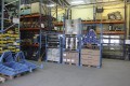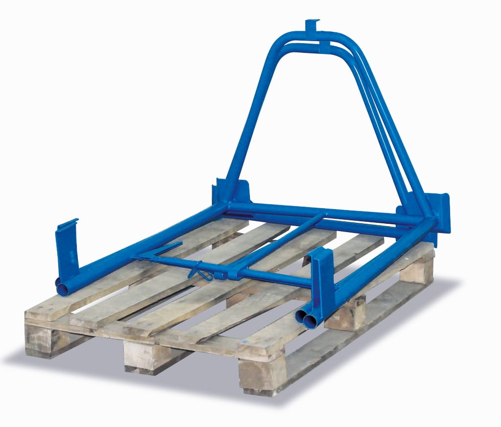 Stalowa konstrukcja rurowa dopasowana do typowych palet, malowana proszkowo RAL 5012 niebieski.