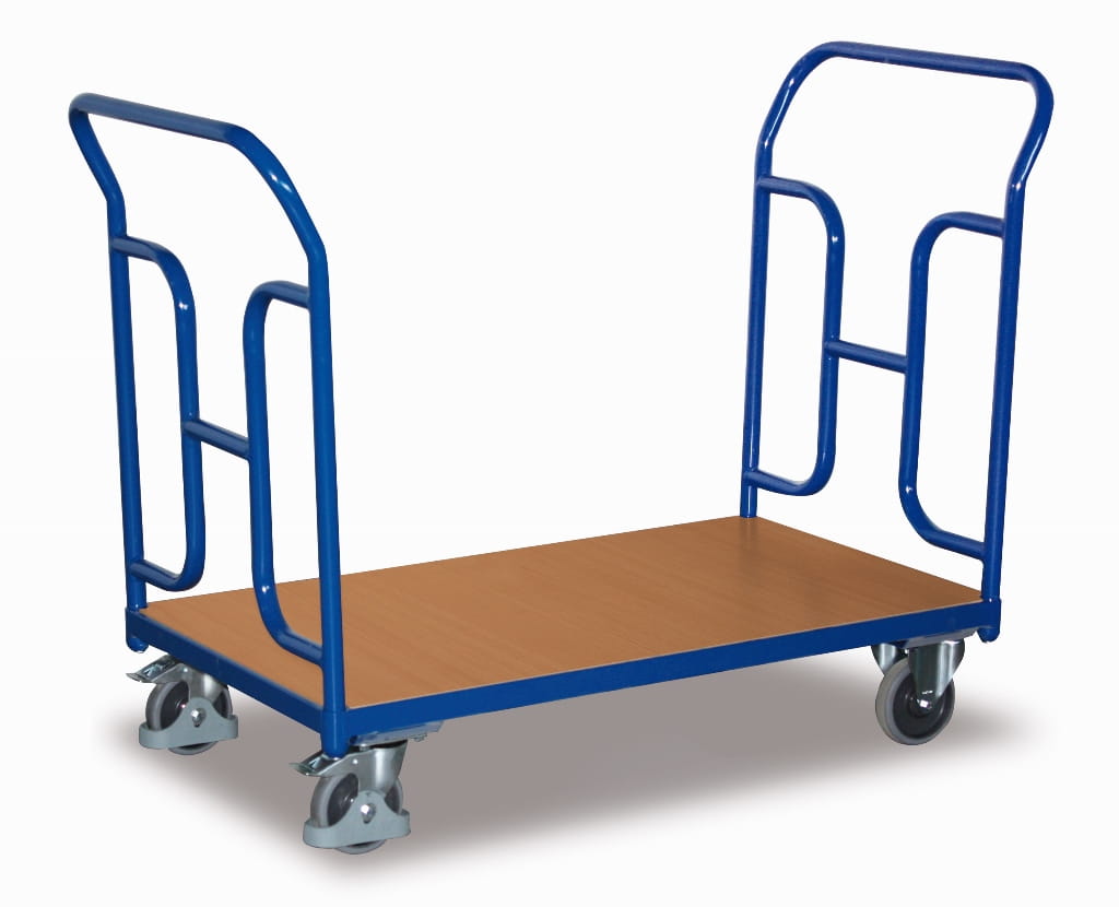 Wózek platformowy z pałąkami. Wielkość platformy tego modelu 1190 x 600 mm.
