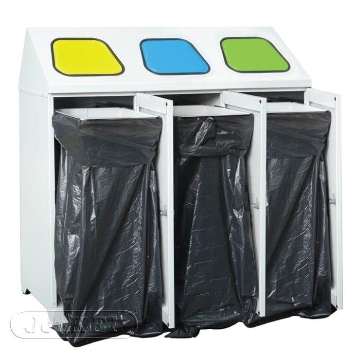 Metalowy pojemnik na odpady 3-komorowy z 3 obejmami do worków