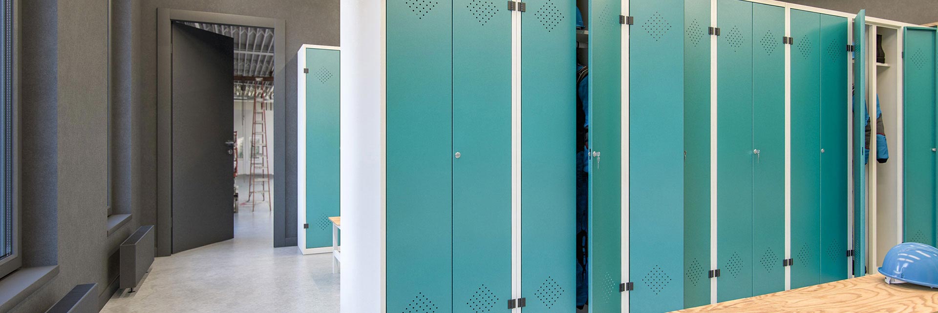 Widać to na zdjęciu z szatni. Szafki tworzą estetyczną powierzchnię.