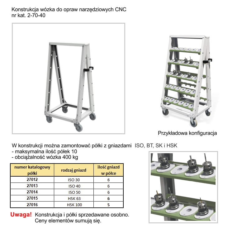 indywidualnie dobieranych półek z gniazdami do narzędzi oznakowanych w standardzie ISO, BT, SK , HSK.